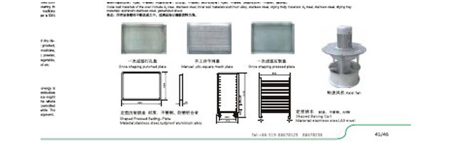 一次成型不銹鋼烘盤;烘箱;鋁烘盤;沖孔盤;各種手工盤;水蒸盤;翻蓋盤;插口盤;散熱器;密封條;百葉片;門鎖鉸鏈,各類風(fēng)機.