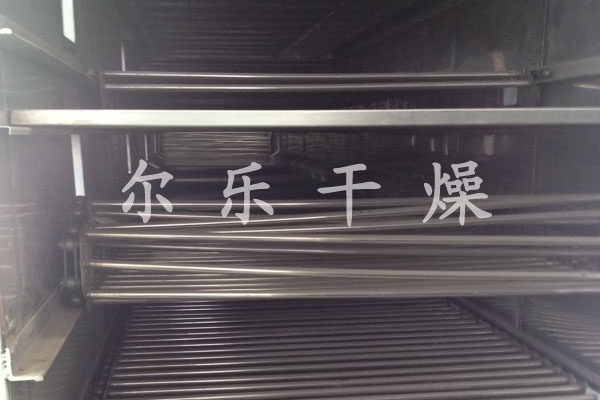 干燥機工作時,冷空氣通過熱交換器進行加熱,采用科學合理循環(huán)方式,使熱空氣穿流通過床面上的被干燥物料進行均勻的熱質(zhì)交換,機體各單元內(nèi)熱氣流在循環(huán)風機的作用下進行熱風循環(huán),后排出低溫高濕度的空氣,平穩(wěn)地完成整個干燥過程。