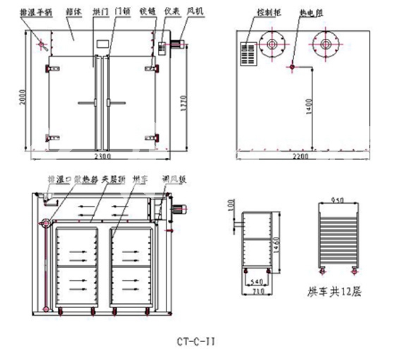 ◎本廠出廠烘車、烘盤尺寸統(tǒng)一,可以互換;